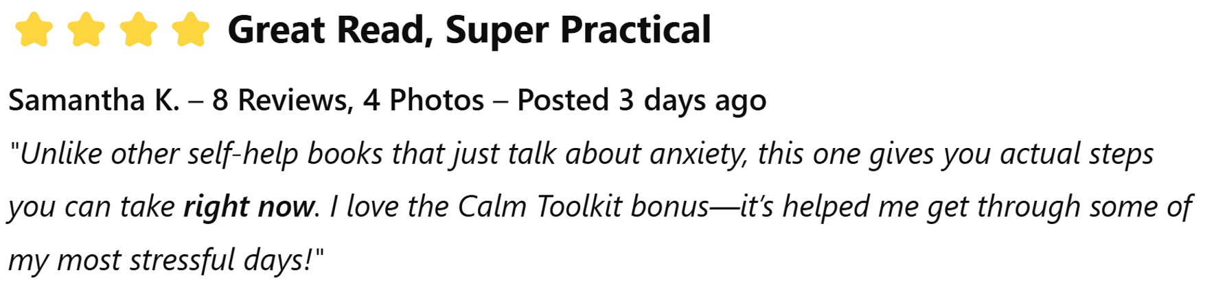 For just $4.99, you’ll get the book PLUS 4 powerful bonuses valued at over $500 -- including the Calm Toolkit, Interactive Workbook, and more.