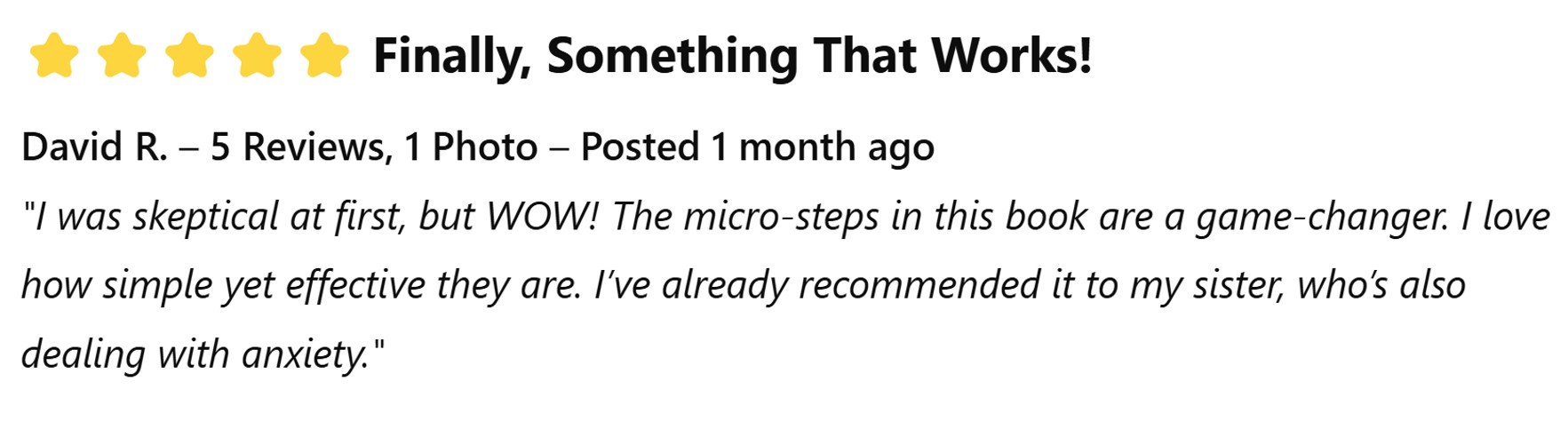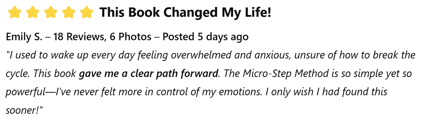 Unlike traditional self-help books that give generic advice, this method is actionable. You’ll get specific, easy-to-follow exercises you can do in seconds—no waiting for motivation or a “perfect” moment.
