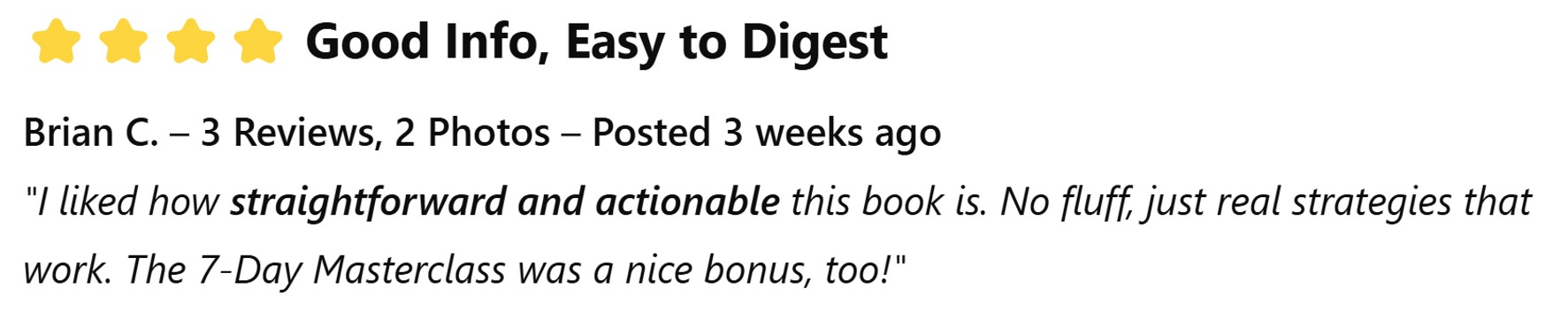 Nothing on this page, in our book, courses, or materials should be considered medical, legal, financial, or professional advice. Results vary based on individual effort and circumstances.