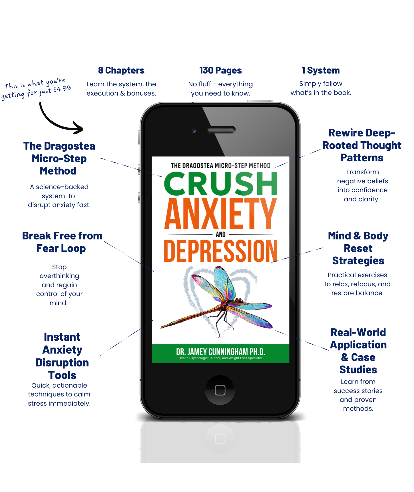 Dr. Jamey Cunningham, Ph.D. is a health psychologist, author, and creator of the Dragostea Micro-Step Method—a science-backed system designed to help people break free from anxiety and depression without medication or therapy.